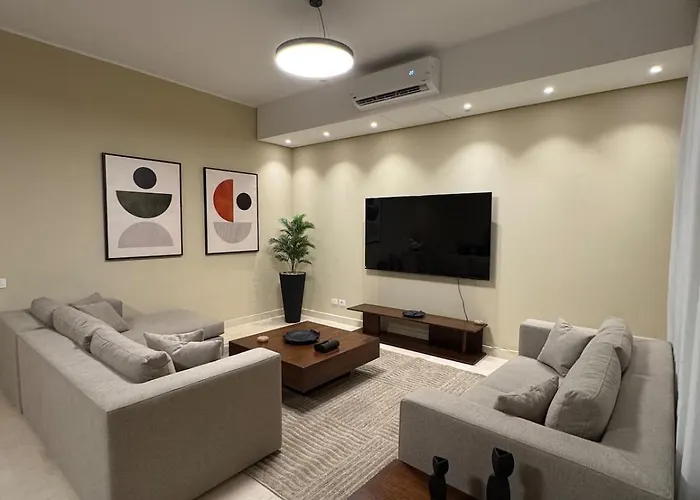 To enjoy your vacation in Cairo, stay at the 205 m² 3 Bedrooms Apartment Villette Sodic New Cairo, which is 4.6 km from AUC New Cairo and around 10 minutes' drive from AUC Gate 4. The apartment has a terrace with views of the garden.